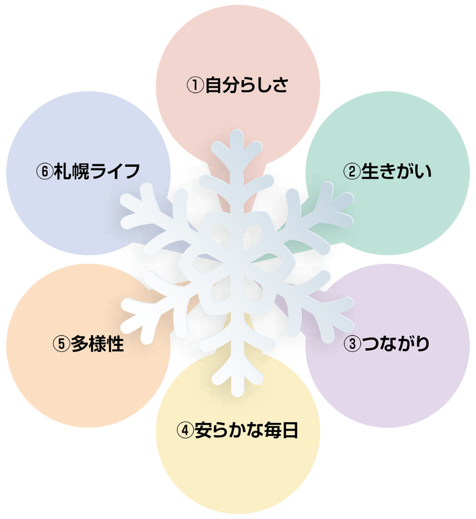 これら6つの項目は、「幸福度との結びつきの強さ」「人口減少問題などの課題への効果」「地域特性や心象などの札幌らしさ」などの観点から構築されております。