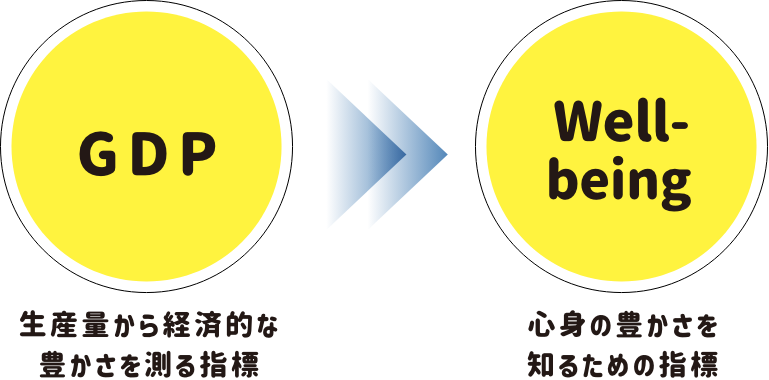 近年、GDPに代表される経済的な豊かさだけではなく、精神的な豊かさや健康を含めて幸福や生きがいを捉える考え方が重視されています。